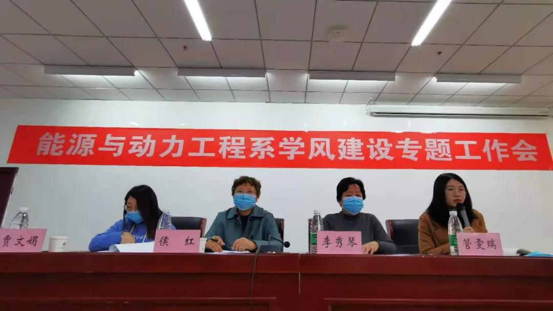 能源与动力工程系特举办了学风建设专题工作会。本次大会于11月10日13点30分在综一阶举办,参与本次大会的人员有能源与动力工程系党总支书记李秀琴、教师党支部书记侯红、专职辅导员贾文娟、专职辅导员管雯瑞、班委代表、优秀学生代表及20级全体班委。