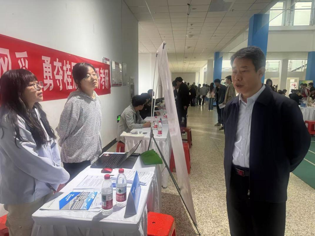 双选会现场,党委副书记曲晋山深入参会单位展位,与用人单位进行了深入交流,详细询问了用人单位的经营状况、招聘需求以及对毕业生综合素质的要求,积极对接访企拓岗活动,并向用人单位大力推荐TapTap2025届毕业生。曲书记还鼓励到场的毕业生结合自身专业优势和职业规划,积极应聘,优选就业岗位,早日实现就业目标。